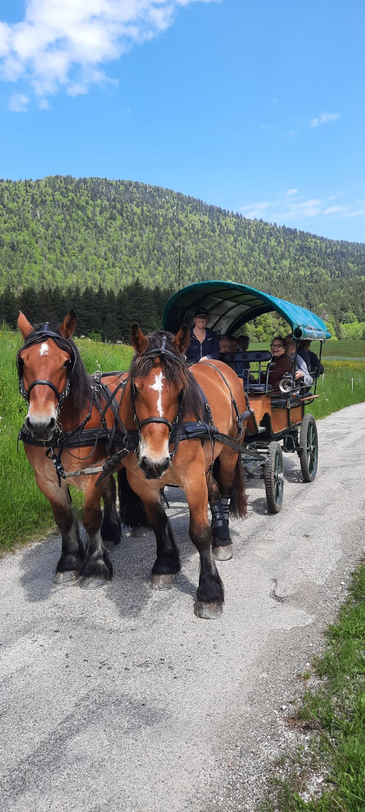 Entdecken Sie die Landschaft im Rhythmus der Pferde bei einer Kutschfahrt durch Autrans.